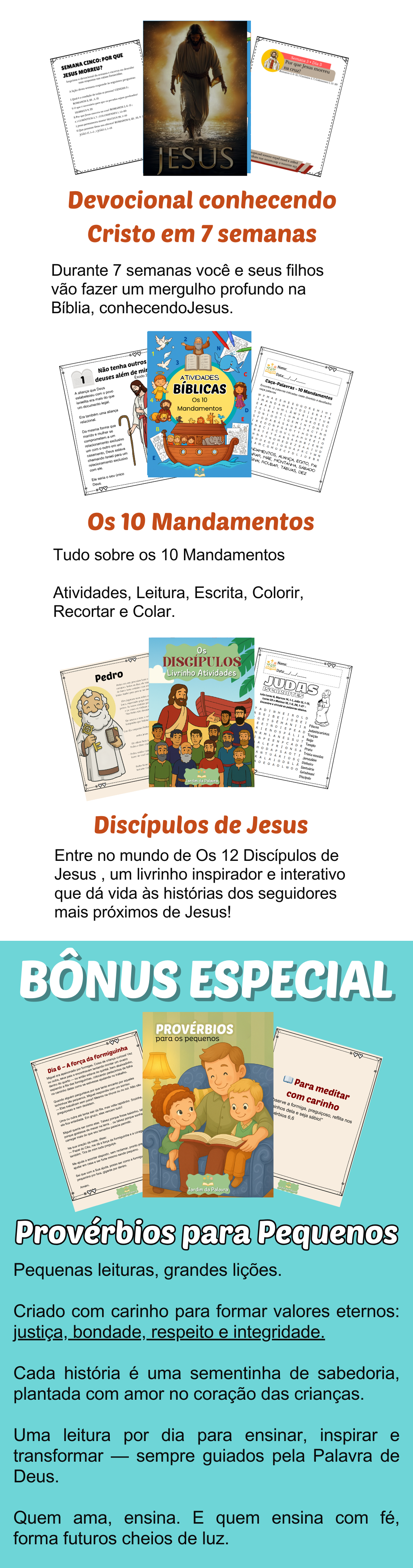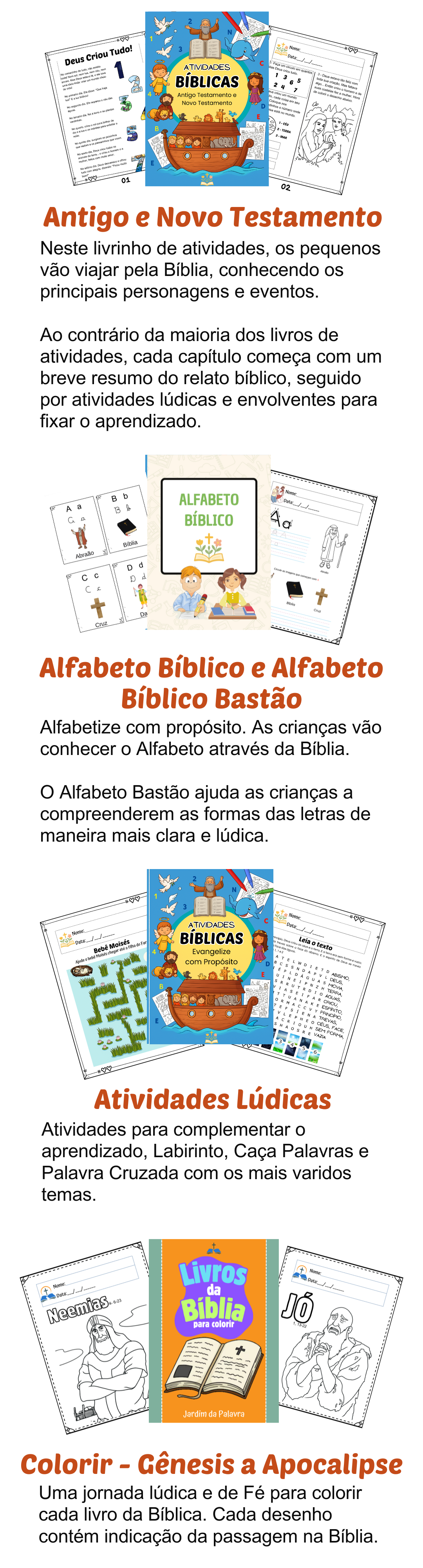 Viaje pela Bíblia com atividades envolventes e divertidas, conhecendo a Deus, Jesus Cristo, à sua palavra e aprendendo orar.